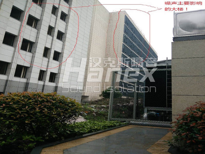 同花順大樓冷卻塔運(yùn)行時嚴(yán)重影響了西面周圍住宅樓的聲環(huán)境,即四臺冷卻塔運(yùn)行時,其風(fēng)口噪聲為93dB(A),進(jìn)風(fēng)口處噪聲值為83 dB(A),其噪聲造成西面住宅樓的窗外噪聲超標(biāo),其窗外大致為73dB(A),需進(jìn)行降噪處理。