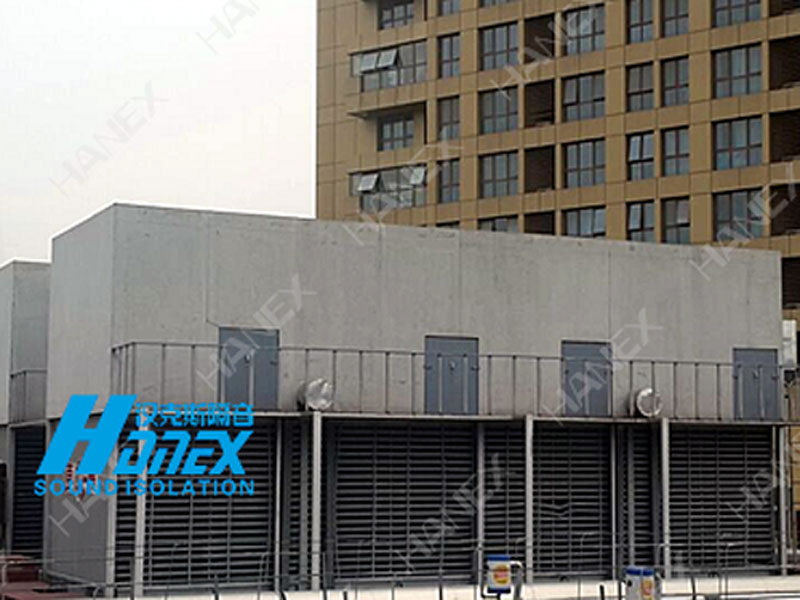 德盈廣場(chǎng)東面3組冷卻塔設(shè)備正常運(yùn)行產(chǎn)生90-95分貝噪聲,對(duì)周邊公寓、酒店、辦公區(qū)造成不良影響。漢克斯隔音設(shè)計(jì)1.冷卻塔出風(fēng)口消聲器,2.冷卻塔四周安裝吸隔聲屏障,工程結(jié)束后敏感區(qū)噪聲測(cè)量值低于45分貝。